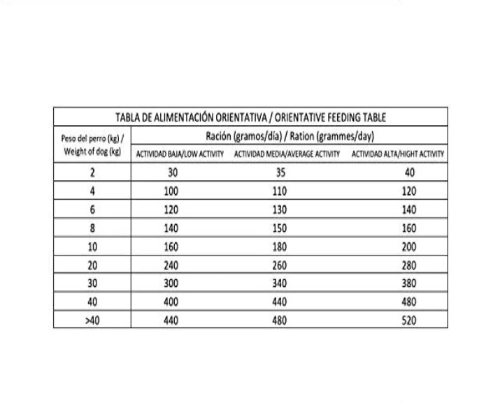 Fresh salmon 25, fresh herring 22, dehydrated salmon 20, potato, peeled peas, chicken oil, beetroot pulp, dehydrated marine zooplankton, hydrolyzed salmon, fresh fruit and vegetables 4 (spinach, carrots, and apple), Ceratonia siliqua, salmon oil (source of fatty acids omega 3 and 6), mineral substances, joint protector pack (chondroitin sulfate, glucosamine sulfate, and MSM), yucca, chicory root (source of inulin-FOS), yeasts (MOS) and aromatic plants with natural antioxidant properties (rosemary, thyme, and oregano).
