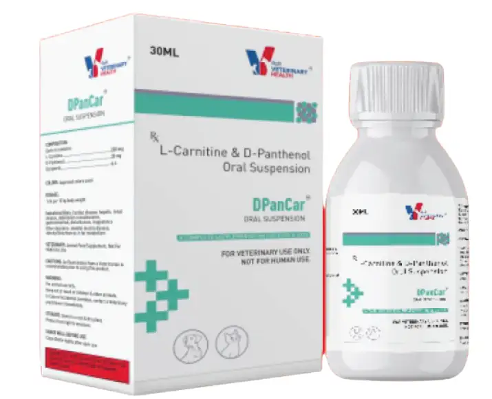 An Drools DpanCar OS oral suspension formulated for cardiac support in dogs & cats, particularly beneficial for cardiac patients, obese pets, and geriatric animals, the combination of L-carnitine and D-panthenol helps improve heart function, energy metabolism, and overall vitality, Drools DpanCar OS oral suspension making it suitable for pets with heart conditions or those requiring metabolic support1.