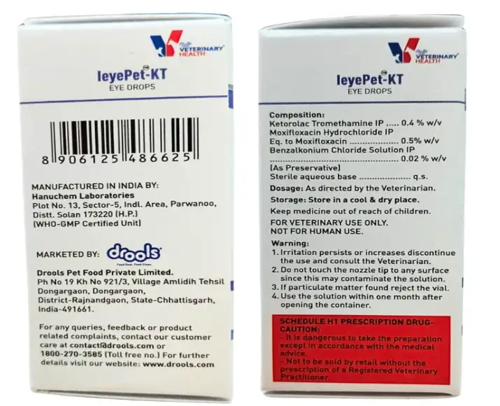 The exact formulation may vary by batch, but Drools LeyePet KT Eye Drops typically contain: