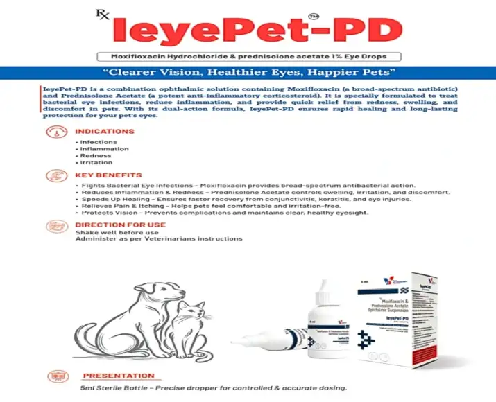 Drools LeyePet PD Eye Drops are specially developed to provide targeted ophthalmic care for dogs and cats experiencing eye discomfort. This veterinary-recommended eye solution works directly at the eye surface to help calm irritation, support eye hydration, and promote overall ocular comfort.
