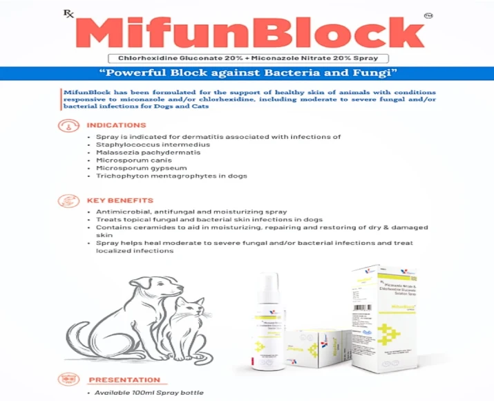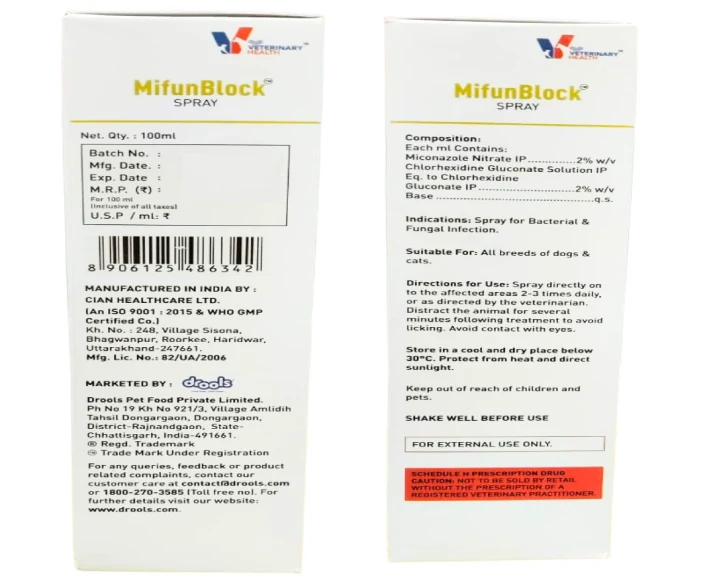 The spray formulation ensures direct contact with affected areas, allowing faster action compared to oral treatments. Drools MifunBlock Spray is easy to apply and does not require rinsing, making it a convenient choice for daily skin care and infection management.