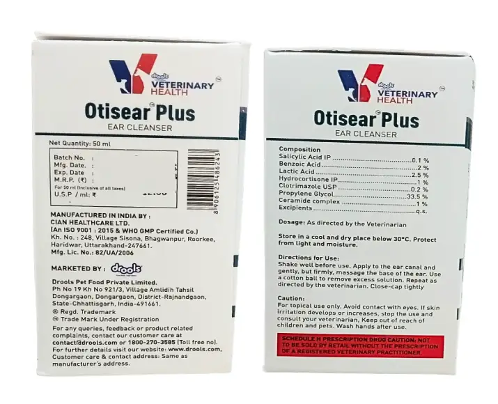 Drools Otisear Plus Ear Cleanser helps maintain ear hygiene and supports infection prevention but is not a substitute for prescribed ear medications.