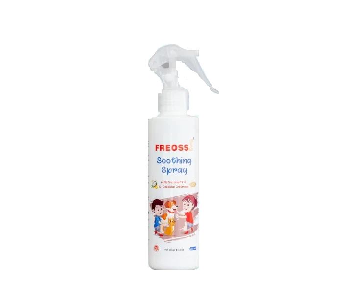 Ideal for dogs and cats of all breeds and coat types, Freossi Soothing Spray supports overall coat health while enhancing manageability and comfort.