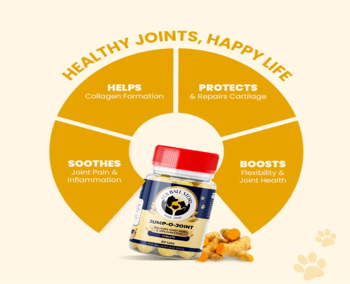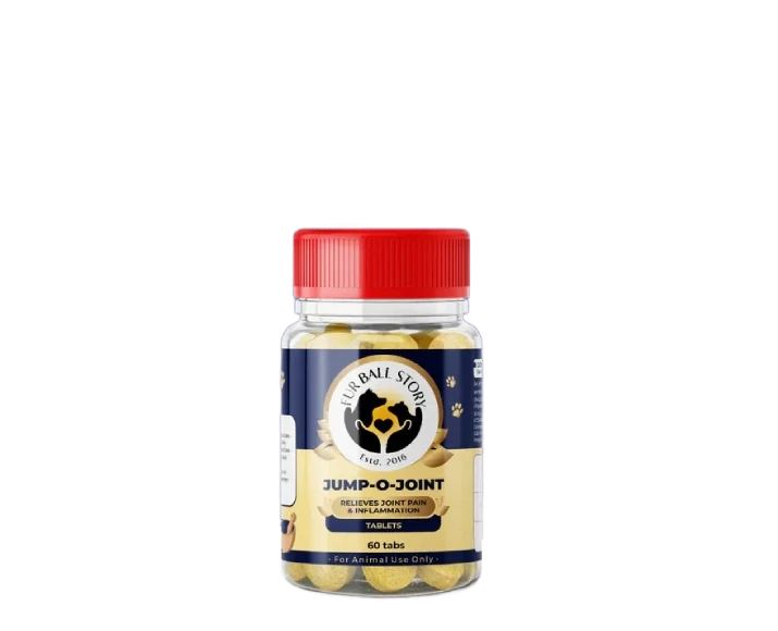 Joint health plays a crucial role in your pet’s overall comfort, mobility, and quality of life. Dogs and cats suffering from joint pain often show signs such as difficulty standing up, limping, reluctance to climb stairs, reduced activity levels, or stiffness after rest. Fur Ball Story Jump O Joint Tablet is specially formulated to support joint health and mobility while providing relief from pain and inflammation in both dogs and cats.