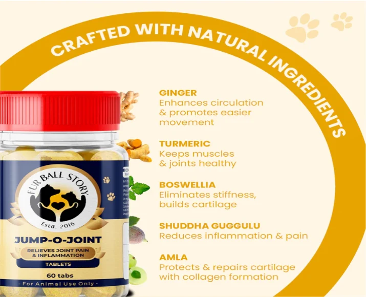 Key Benefits Of Fur Ball Story Jump O Joint Tablet, For Joint Pain in Dogs & Cats