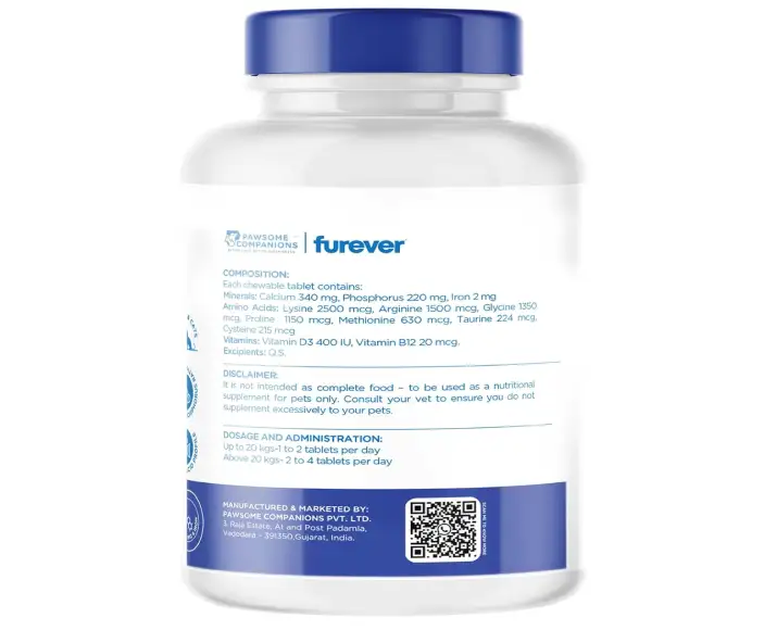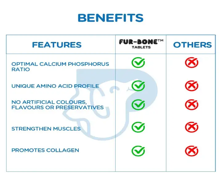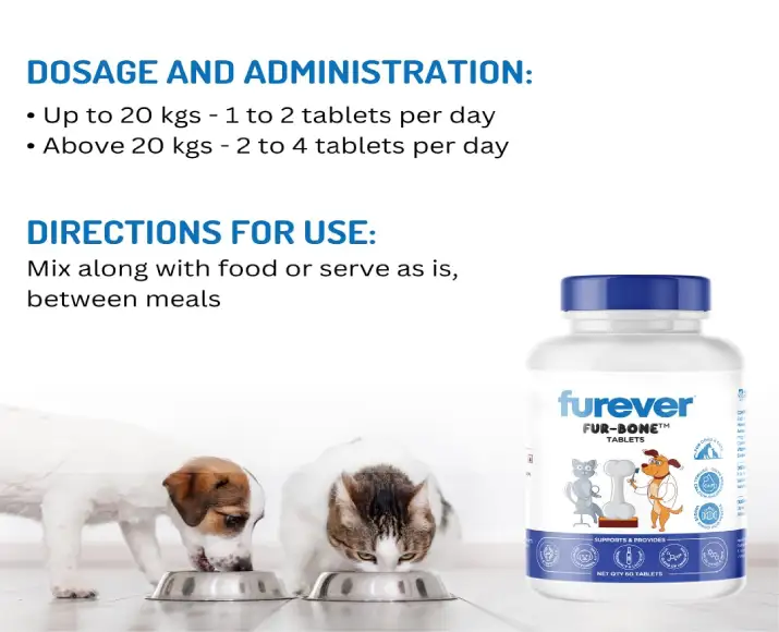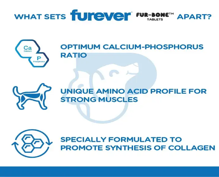 Furever Fur Bone Bone Health Tablets are specially formulated nutritional supplements designed to support strong bones, healthy joints, & overall skeletal development.