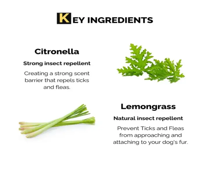 • Lemongrass Oil acts as a natural insect repellent. Its strong citrus scent interferes with the sensory receptors of ticks, effectively keeping them away from your pet.