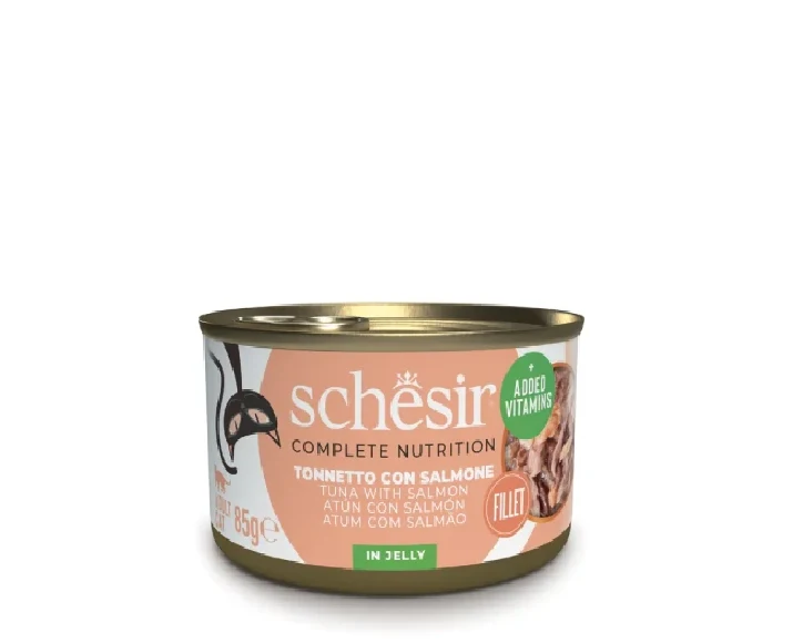 Schesir Tuna with Salmon Cans for Adult Cat, Fillets in Jelly, 85 gm