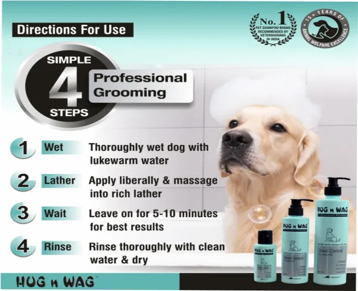 Follow these steps for effective use of TTK Hug N Wag Shed Control Shampoo: