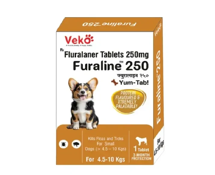 The Veko Furaline Fluralaner 250 MG chewable tablet is a premium, vet-trusted solution designed to protect dogs and puppies weighing between 4.5–10 kg from ticks and fleas, containing fluralaner, a powerful active ingredient, this tablet works by targeting and eliminating external parasites quickly and effectively, The Veko Furaline Fluralaner 250 MG chewable tabletIdeal for busy pet parents, it offers long-lasting protection with a single, tasty dose that most dogs take willingly without fuss.