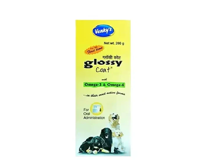 Venkys Glossycoat Omega 3 & Omega 6 for Dogs is a specially formulated dietary supplement designed to promote a healthy coat, improve skin condition, and strengthen immunity in dogs of all breeds, this 200gm supplement provides essential fatty acids that dogs cannot produce on their own, Venkys Glossycoat Omega 3 & Omega 6 for Dogs making it a trusted choice for maintaining optimal skin health and reducing issues like dryness, flakiness, and excessive shedding, whether your dog struggles with dull coat, itching, or skin sensitivity, Venkys Glossycoat Omega 3 & Omega 6 for Dogs offers a vet-recommended solution to restore natural shine and vitality.