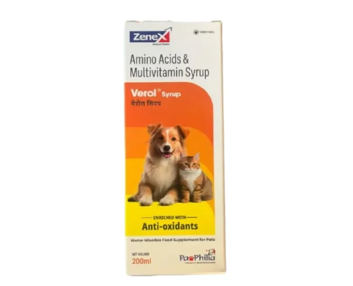 Zenex Verol Syrup delivers essential vitamins that support internal organ function, immunity, metabolism, bone strength, and skin health. The liquid form enables rapid absorption into the bloodstream, ensuring faster and more effective nutritional support. Each dose replenishes essential nutrients to maintain your pet’s overall well-being.